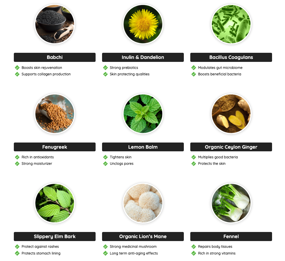 Targets Gut-Skin Axis: Claims that improving gut health directly leads to healthier, younger-looking skin.